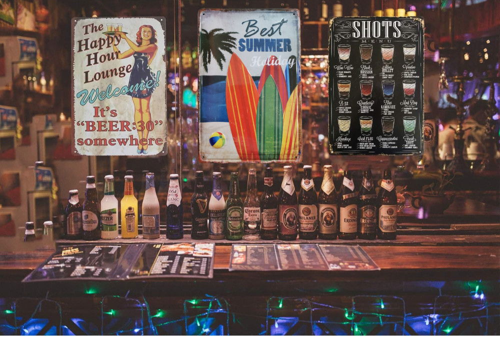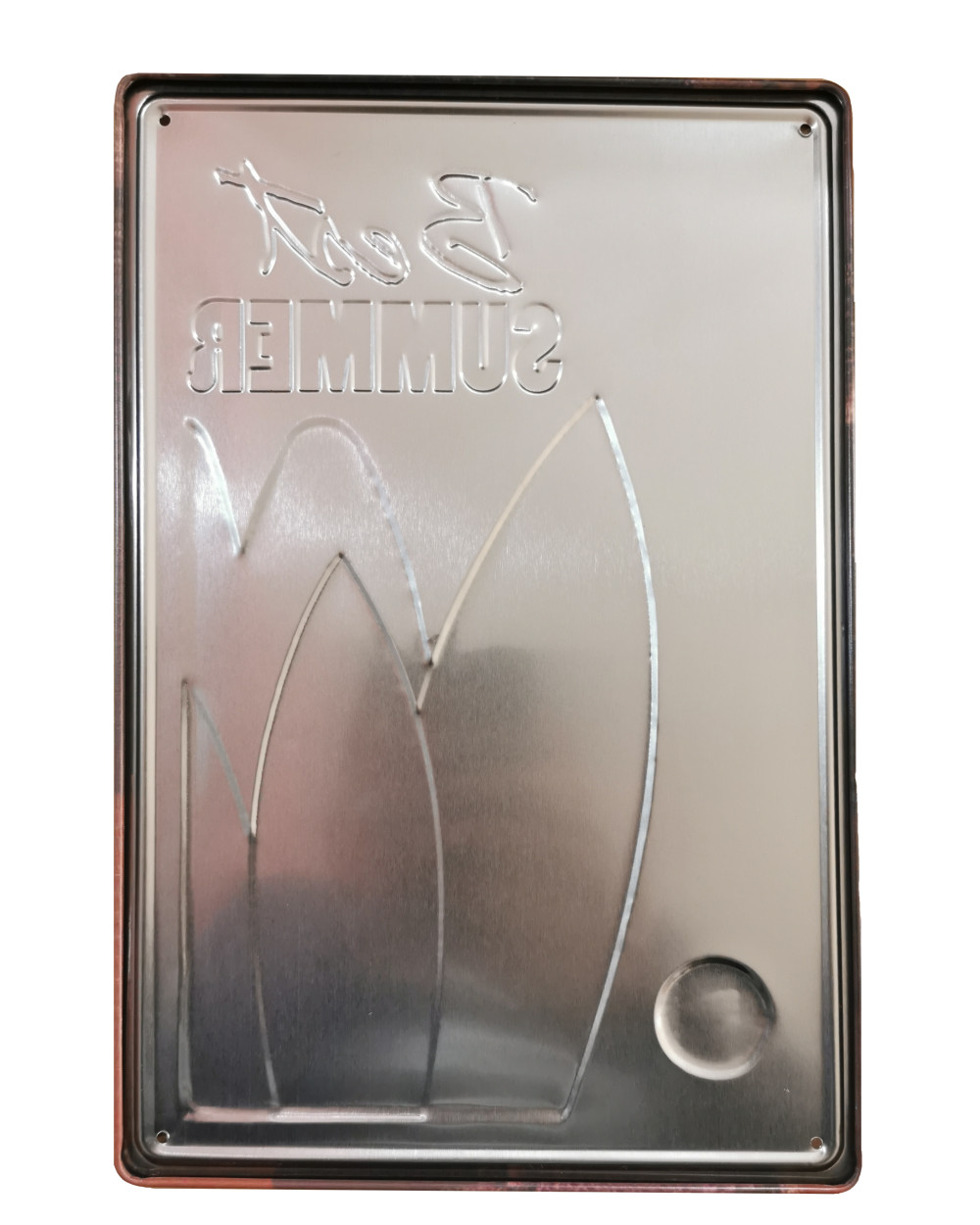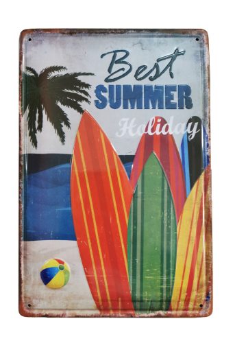 Vintage Dekor Fémtábla, dombornyomott 'Summer' felirat, retro hangulatú kialakítás, 20x30cm