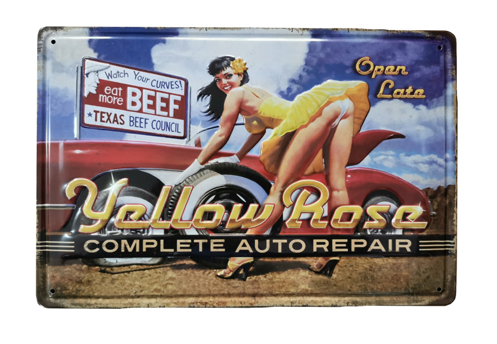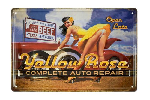 Vintage Dekor Fémtábla, dombornyomott 'Yellow Rose' felirat, retro hangulatú kialakítás, 30x20cm