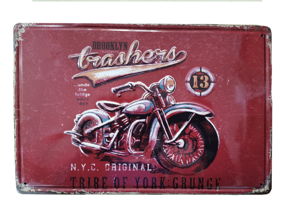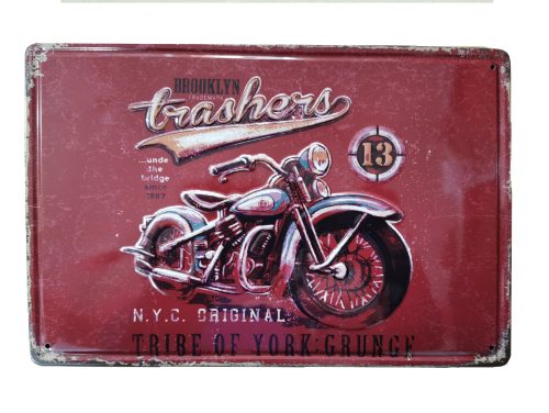 Vintage Dekor Fémtábla, dombornyomott, 'Trashers ...unde the bridge' felirat, retro hangulatú kialakítás, 30x20cm