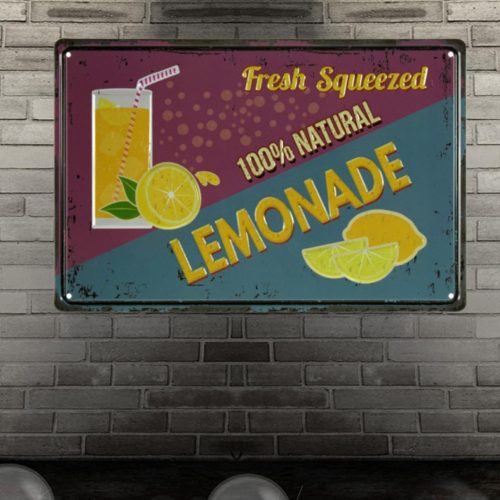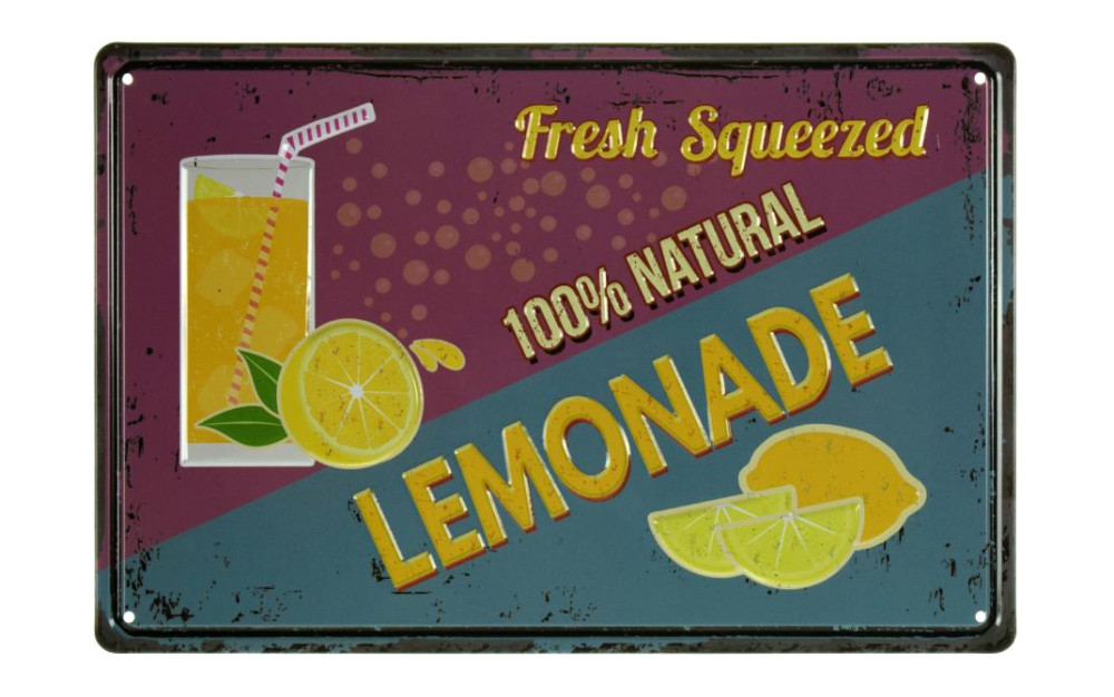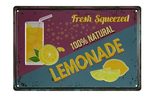 Vintage Dekor Fémtábla, dombornyomott, 'LEMONADE' felirat, retro hangulatú kialakítás, 30x20cm