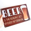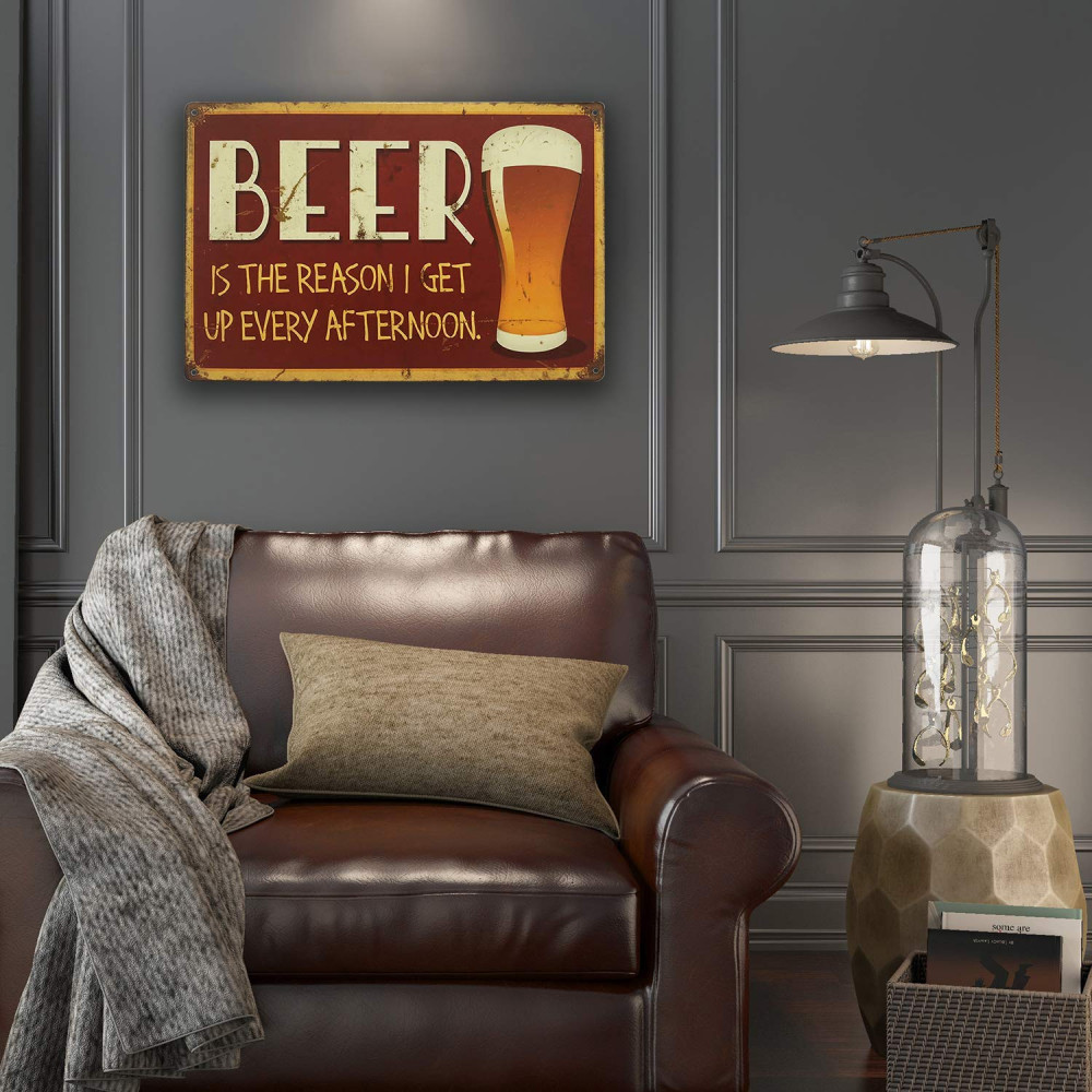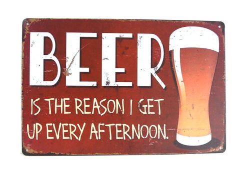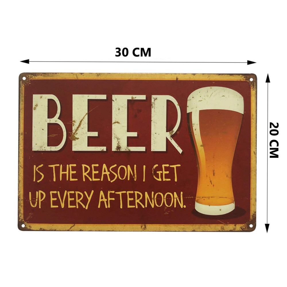 Vintage Dekor Fémtábla, dombornyomott, 'BEER' felirat, retro hangulatú kialakítás, 30x20cm, vörös-barna antikolt háttér