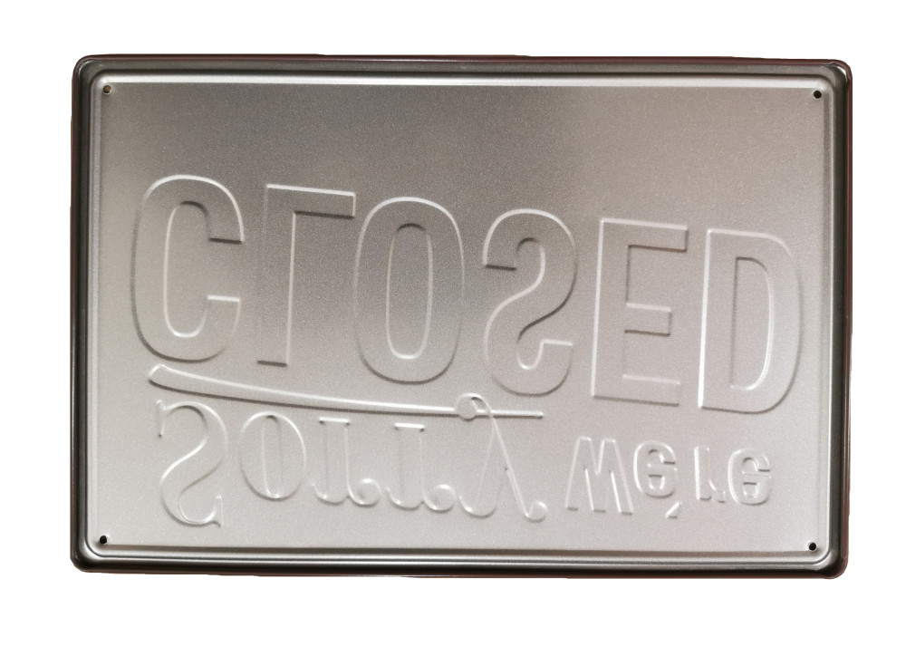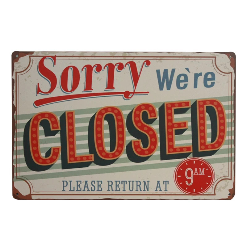 Vintage Dekor Fémtábla, dombornyomott 'Sorry We're closed' felirat, retro hangulatú kialakítás, 30x20cm