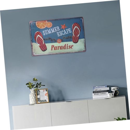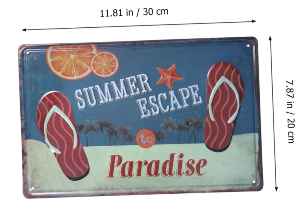 Vintage Dekor Fémtábla, dombornyomott 'SUMMER ESCAPE' felirat, retro hangulatú kialakítás, 30x20cm