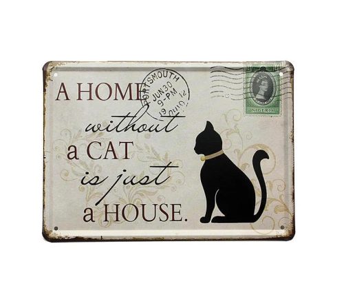 Ez a gyönyörű vintage dombornyomott 'Home without a cat is just a house' fémtábla egy időutazást kínál a múltba, és lenyűgöző módon örökíti meg az otthoni élet világát.