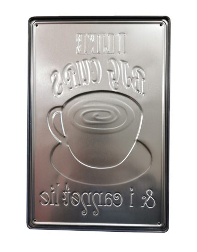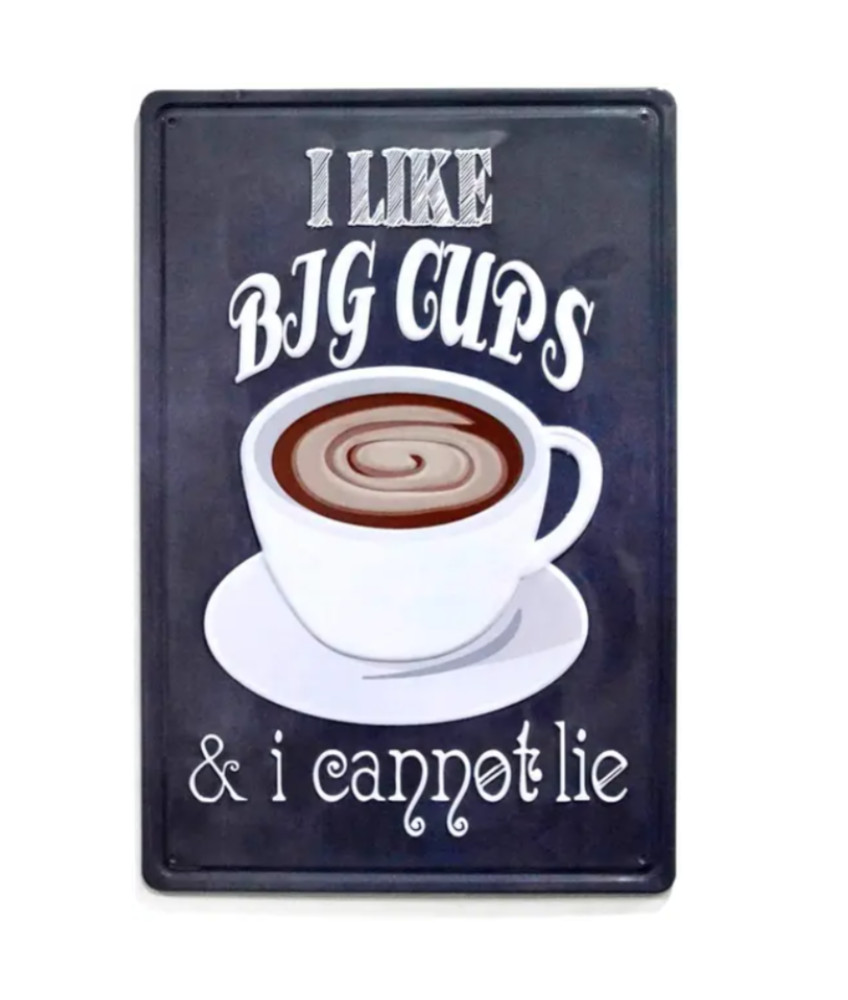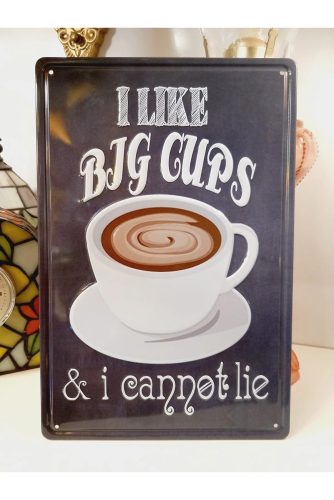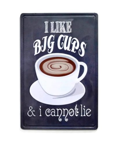 Vintage Dekor Fémtábla, dombornyomott 'I like Big Cups' felirat, retro hangulatú kialakítás, 20x30cm, fekete háttér