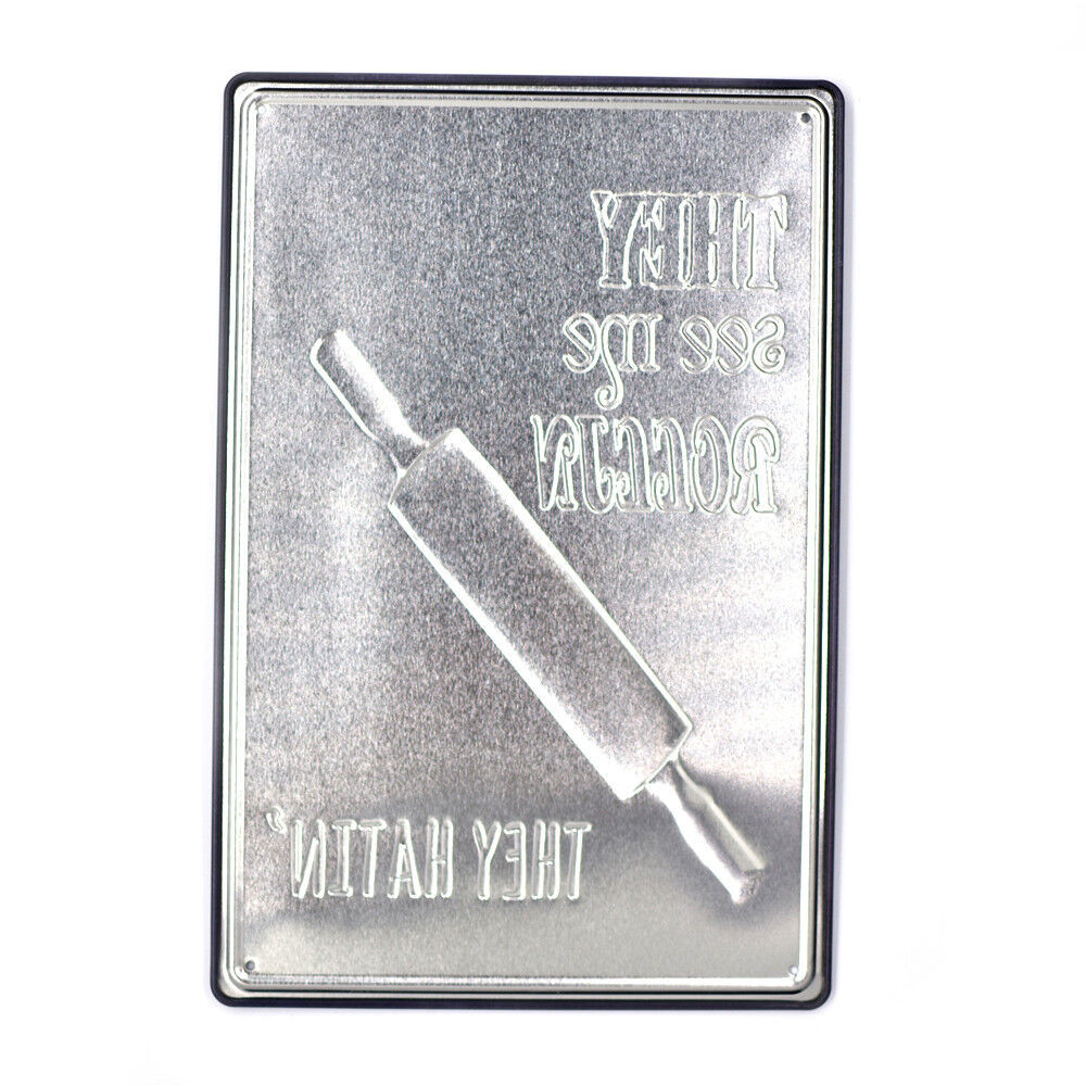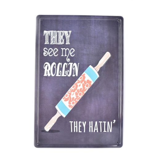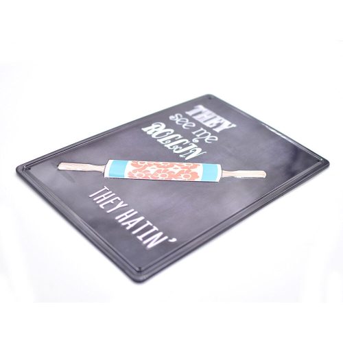Vintage Dekor Fémtábla, dombornyomott 'They see me rollin' felirat, retro hangulatú kialakítás, 20x30cm