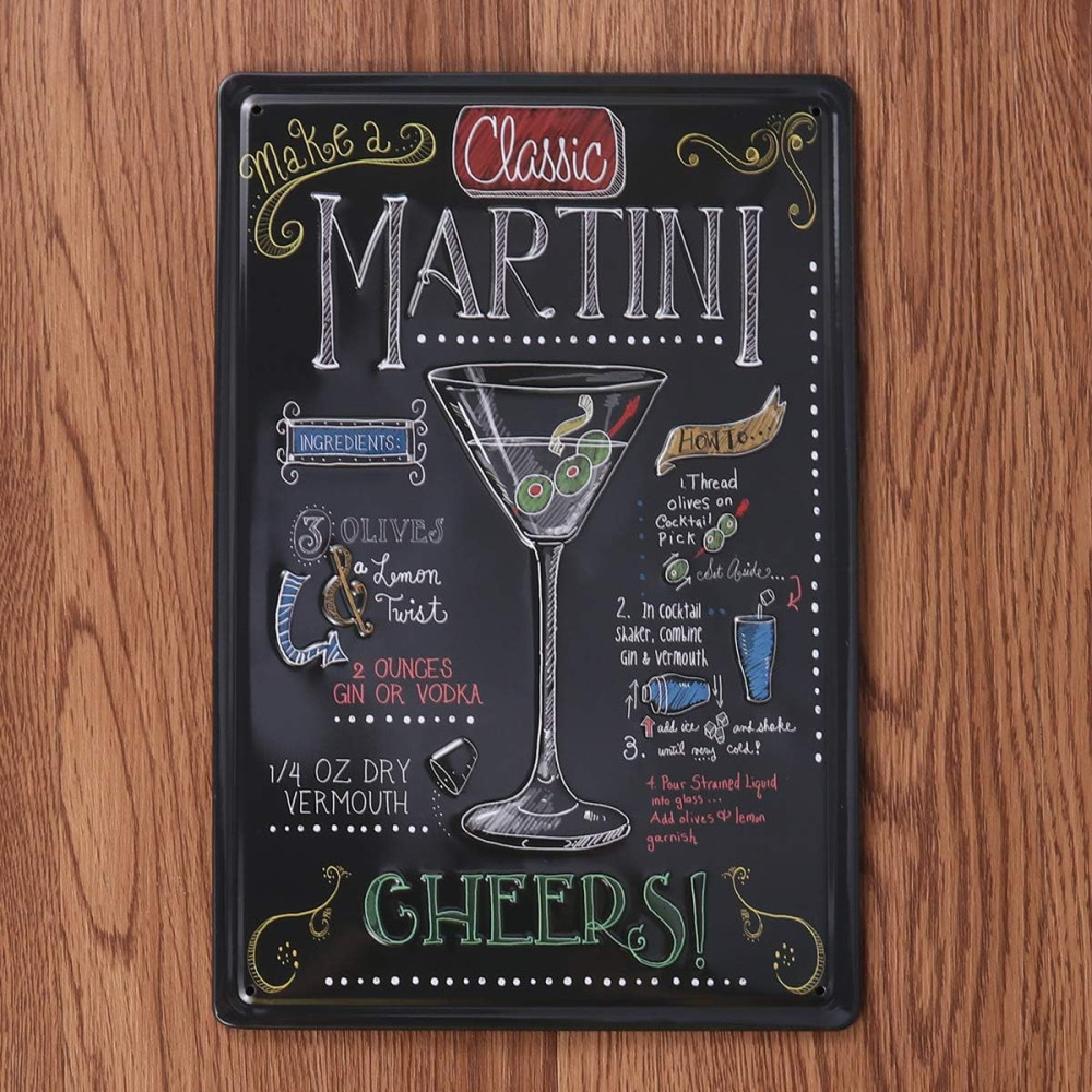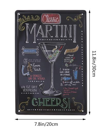 Vintage Dekor Fémtábla, dombornyomott 'MARTINI' felirat, retro hangulatú kialakítás, 20x30cm, sötét háttér