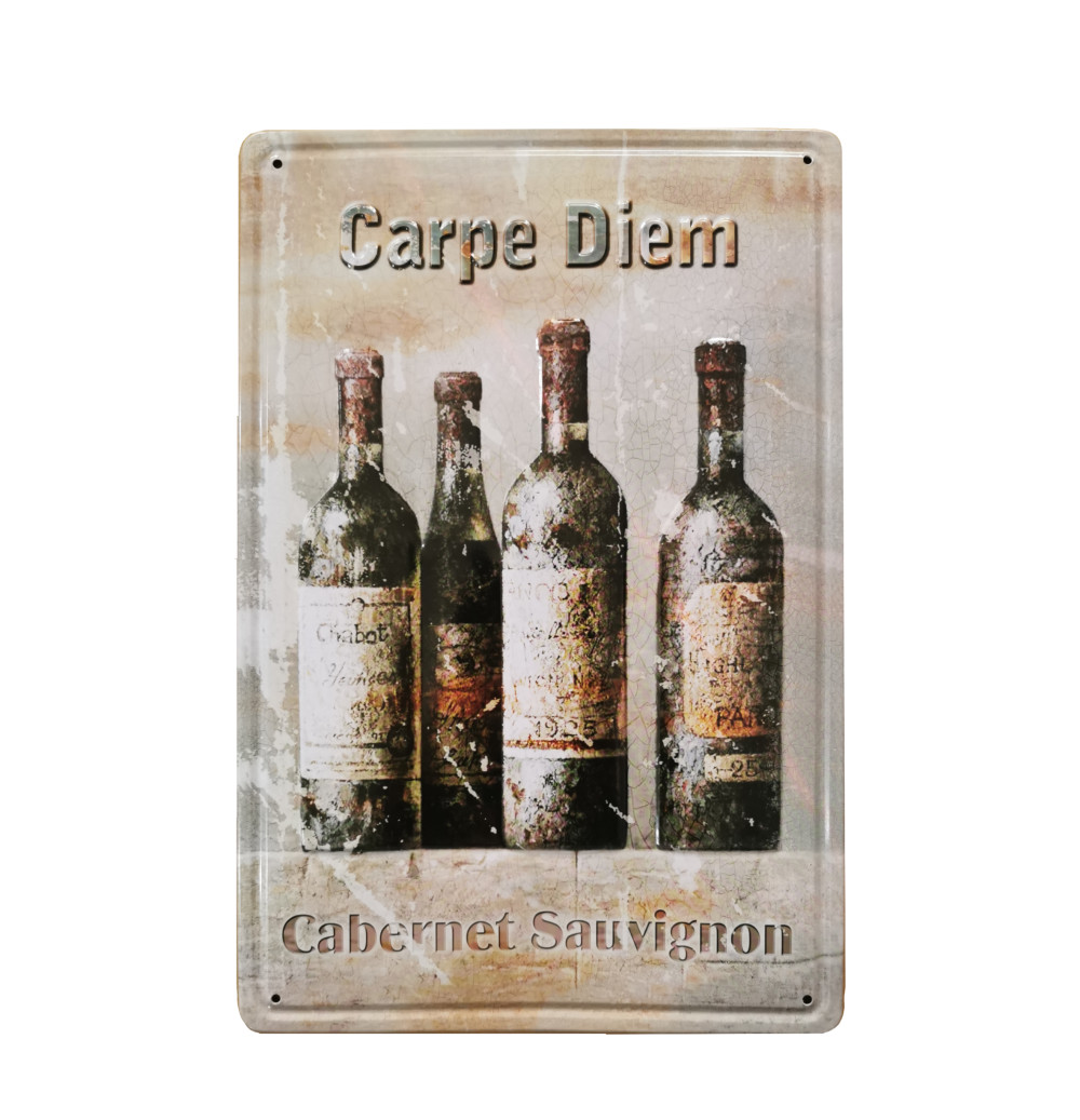 Vintage Dekor Fémtábla, dombornyomott, 'Carpe Diem Cabernet Savignon' felirat, retro hangulatú kialakítás, 20x30cm