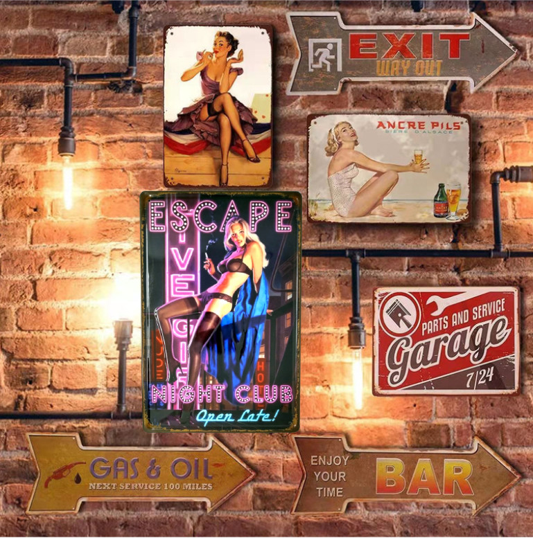 Vintage Dekor Fémtábla, dombornyomott, 'ESCAPE NIGHT CLUB Open Late!' felirat, retro hangulatú kialakítás, 20x30cm