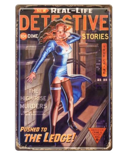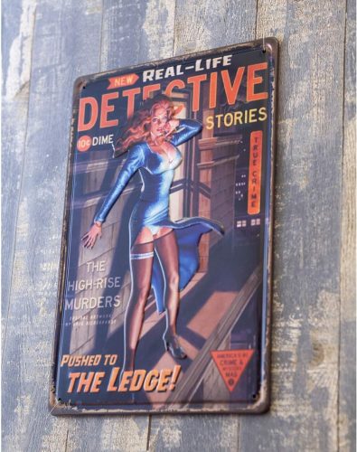 Ez a fémtábla nemcsak díszítőelemként funkcionál, hanem nosztalgikus élményt is nyújt azoknak, akik szeretik az izgalams detektív regényeket, vagy akár a regény hangulatát is odavarázsolhatja otthoni bárjába. Kiváló ajándékötlet a detektív regények kedvelőinek és a vintage stílus rajongóinak is egyaránt.