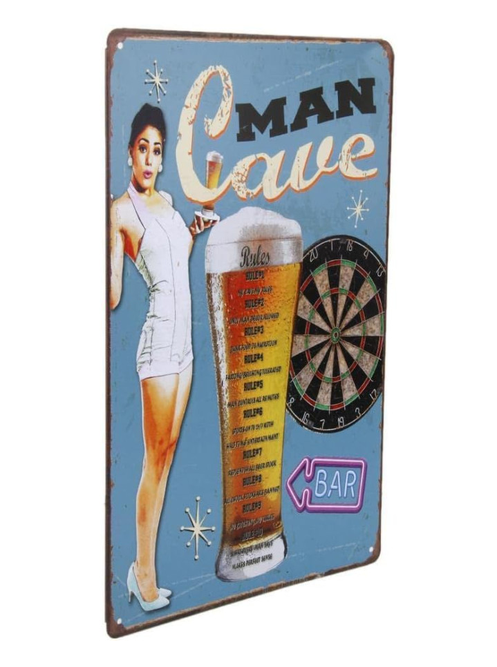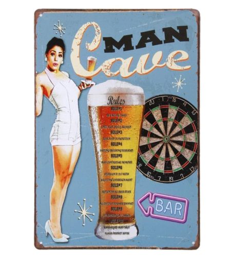 Vintage Dekor Fémtábla, dombornyomott 'MAN Cave' felirat, retro hangulatú kialakítás, 20x30cm, világoskék háttér