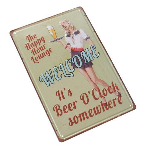 Vintage Dekor Fémtábla, dombornyomott 'WELCOME' felirat, retro hangulatú kialakítás, 20x30cm