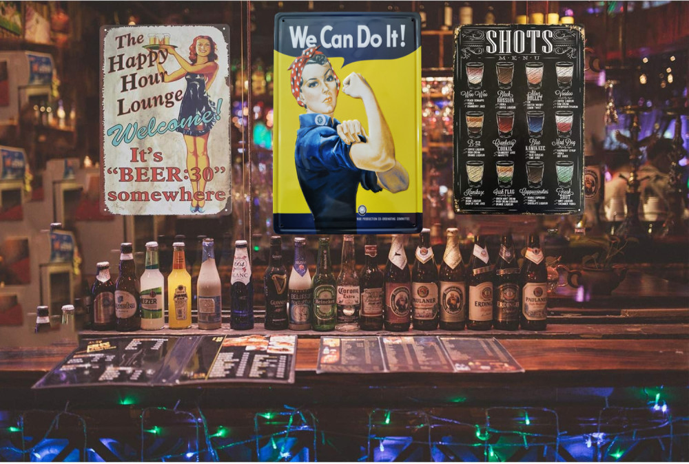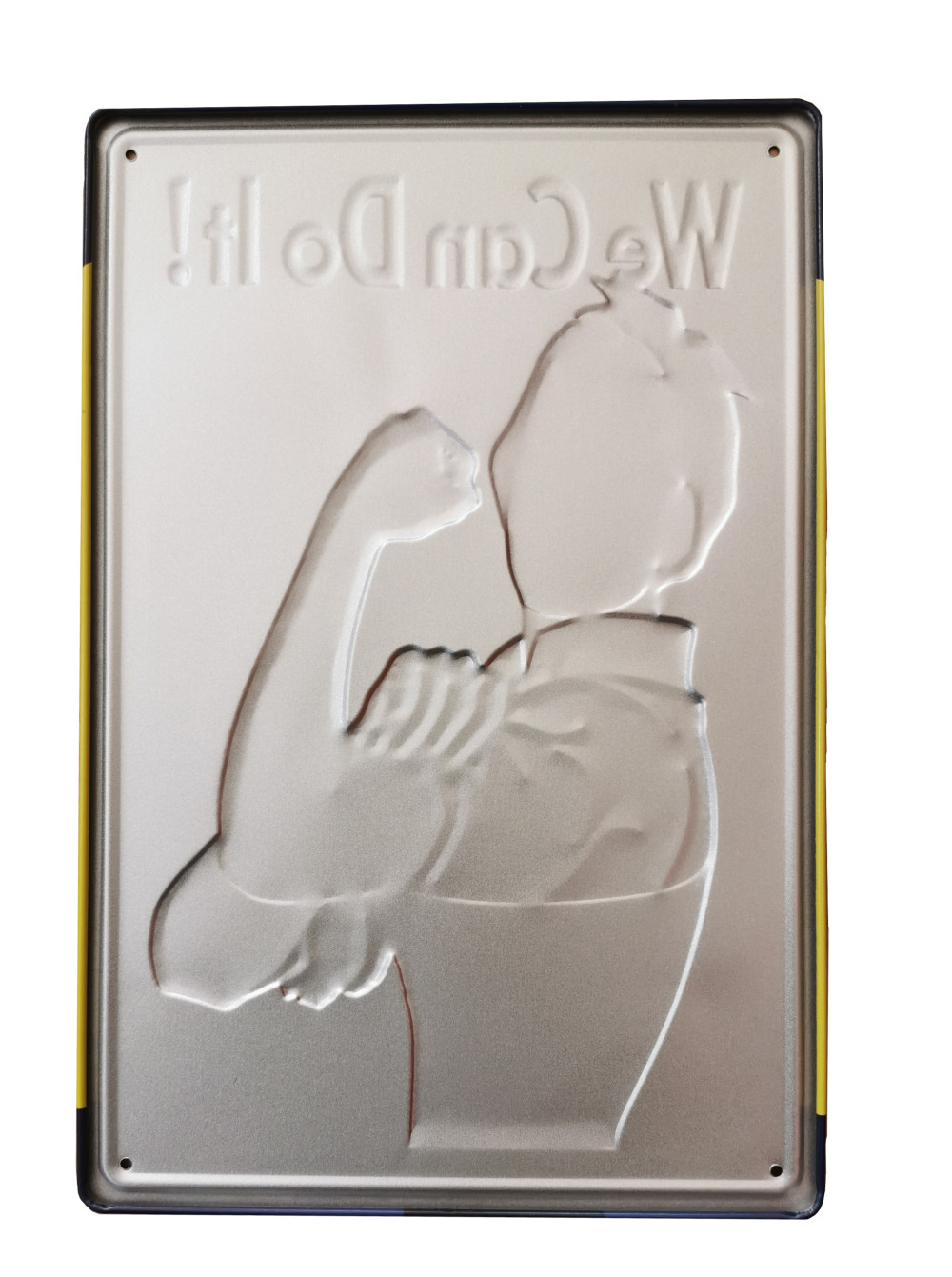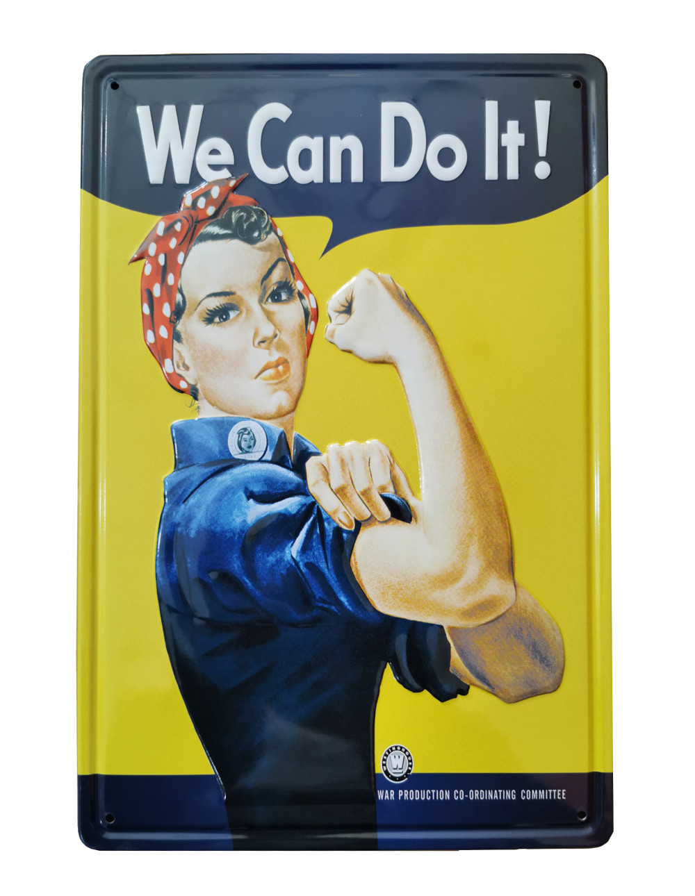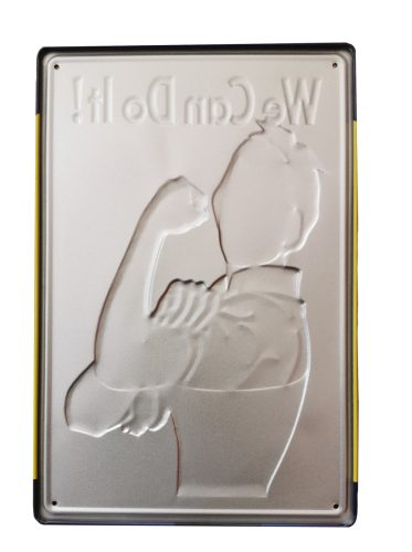 Vintage Dekor Fémtábla, dombornyomott 'We Can Do It!' felirat, retro hangulatú kialakítás, 20x30cm