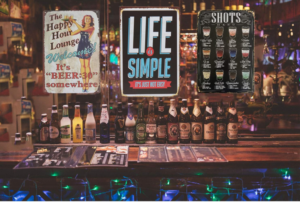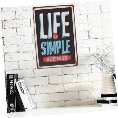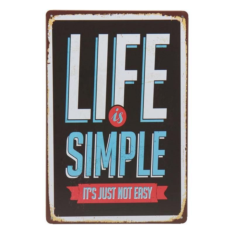Vintage Dekor Fémtábla, dombornyomott, 'Life is Simple' felirat, retro hangulatú kialakítás, 20x30cm