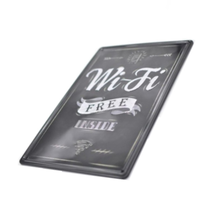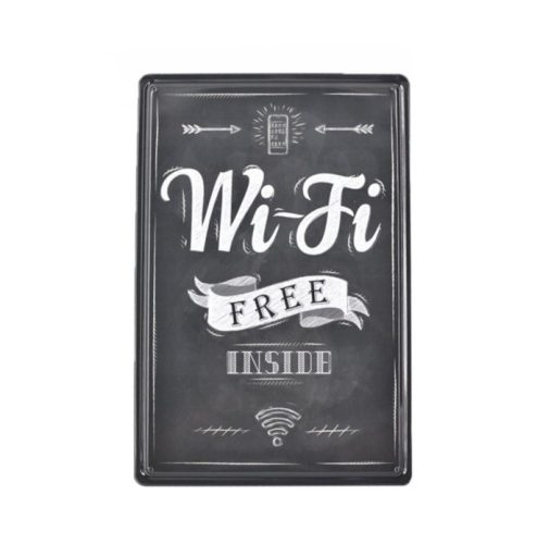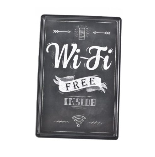 Vintage Dekor Fémtábla, dombornyomott 'Wi-Fi Free' felirat, retro hangulatú kialakítás, 20x30cm