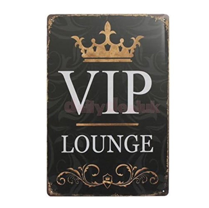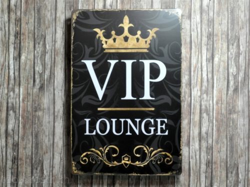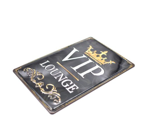 Vintage Dekor Fémtábla, dombornyomott, 'VIP lounge' felirat, retro hangulatú kialakítás, 20x30cm
