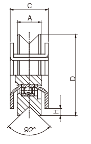 Tolókapura szerelhető görgőtest. Ø68mm átmérőjű, V-profilú, süllyesztett görgő.