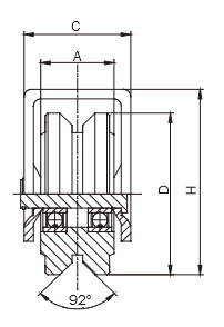 Tolókapura szerelhető görgőtest. Ø68mm átmérőjű, Y-profilú görgő.