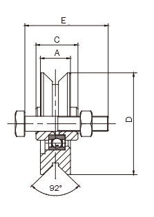 Tolókapura szerelhető görgőtest. Ø58mm görgő átmérővel. M10-es külső csavarmenet segítségével rögzíthető.