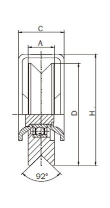 Tolókapura szerelhető görgőtest. Ø68mm átmérőjű, V-profilú görgő.