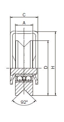 Tolókapura szerelhető görgőtest. Ø78mm átmérőjű, V-profilú görgő.