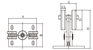 Öt görgős úszókapu görgősor alaplappal. Ø60mm-es görgőkkel.