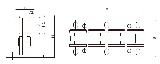 Nyolc görgős úszókapu görgősor alaplappal. Ø68mm-es görgőkkel.